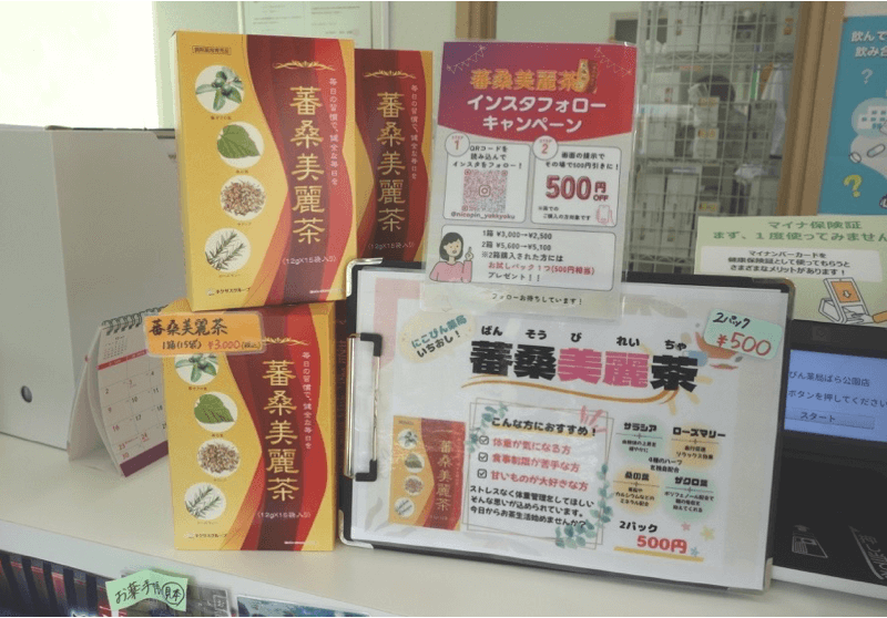 現在は自社ブランドのお茶の販売を行い、来局された方との新しい接点として活用されています。